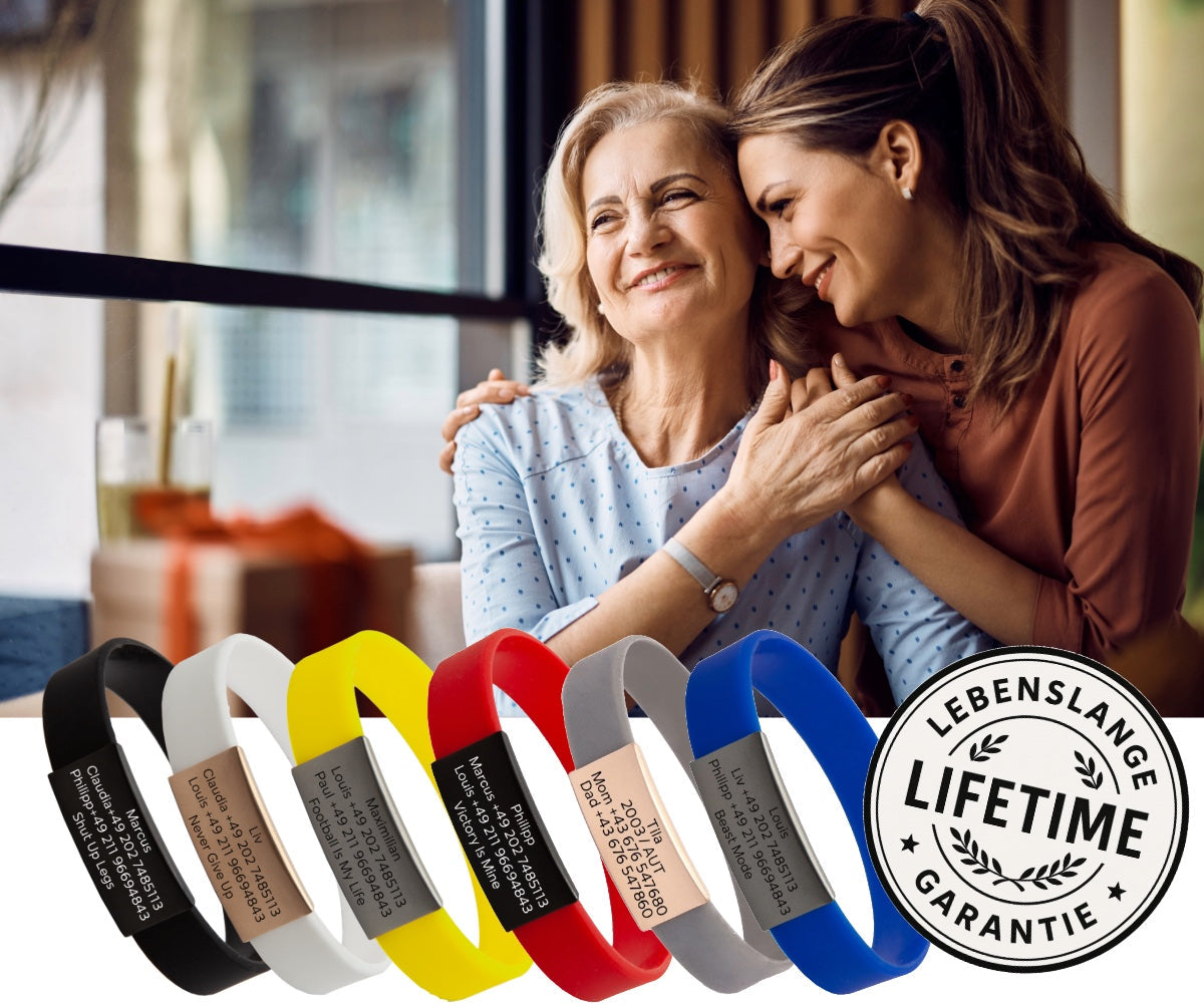 Schnelle Identifizierung bei Demenzerkrankung. Die iD-Tags ermöglichen eine schnelle Identifizierung des Trägers und seiner medizinischen Bedürfnisse. Besonders wichtig, wenn Träger nicht ansprechbar sind oder keine Möglichkeit haben ihre medizinische Vorgeschichte zu kommunizieren.